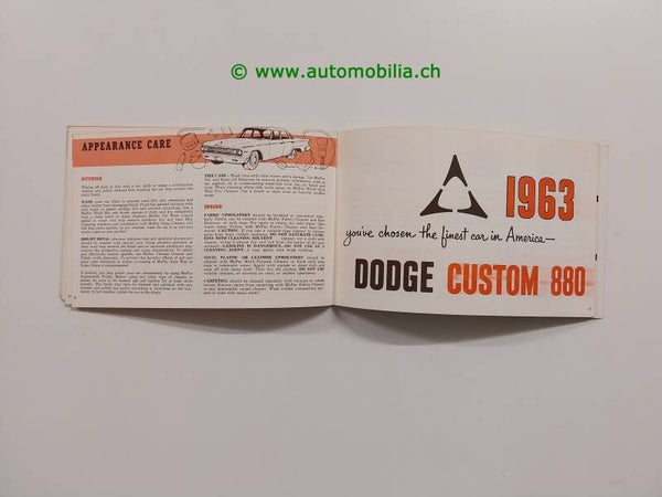 Ein seltenes Original für Oldtimer-Sammler, Dodge-Enthusiasten und Fahrzeugliebhaber: Diese originale Betriebsanleitung / Bedienungsanleitung für den Dodge 880 / Custom 880 aus dem Modelljahr 1963 liefert auf 44 Seiten alle wichtigen Informationen zu Bedienung, Wartung und Pflege.