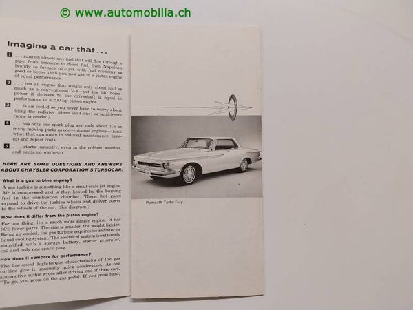 Original Plymouth Turbo Fury Concept Prospekt 1962