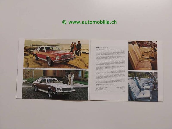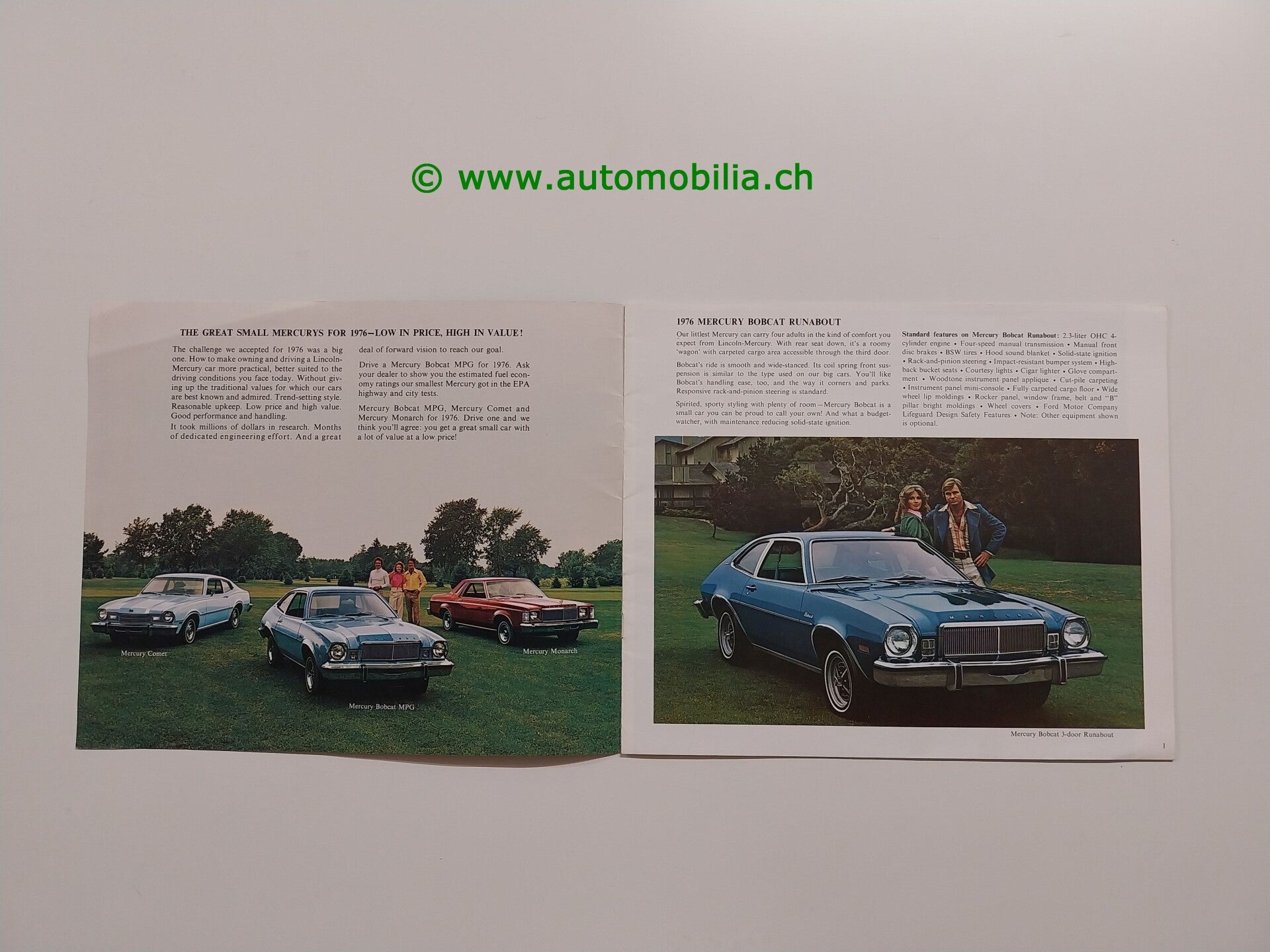 Originales Mercury Modellprogramm Prospekt für das Modelljahr 1976, erschienen in den USA. Das 20-seitige Verkaufsprospekt (Drucknummer 76-205) stellt die Mercury-Modellpalette ausführlich vor: Bobcat, Monarch und Comet, inklusive Ausstattungsdetails, technischen Daten und beeindruckenden Abbildungen.