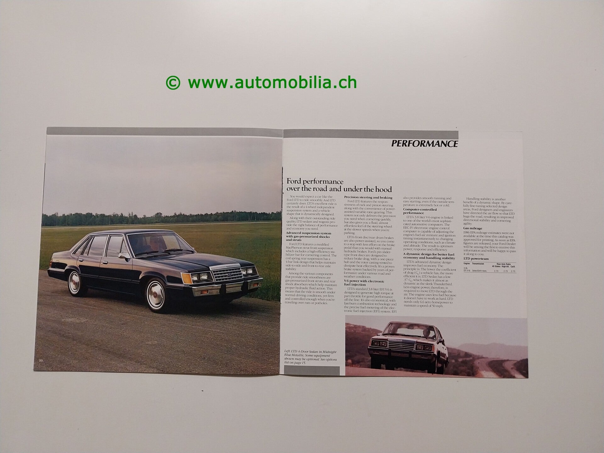Sichern Sie sich das originale Ford LTD Prospekt, ein wertvolles Sammlerstück für Ford-Fans, Limousinen-Enthusiasten und Automobil-Sammler. Dieses Prospekt präsentiert den luxuriösen Ford LTD der Mitte der 1980er Jahre und liefert detaillierte Informationen zu Design, Technik und Ausstattung dieses klassischen amerikanischen Mittel- und Oberklassewagens.