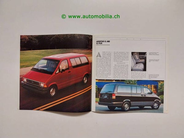 Rarität: Originalprospekt der Ford Aerostar Serie aus den USA, eine wertvolle Ergänzung für Sammler historischer Fahrzeugprospekte.