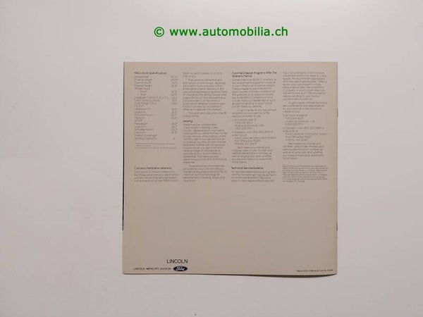 Lincoln Town Car 1982 Prospekt englisch