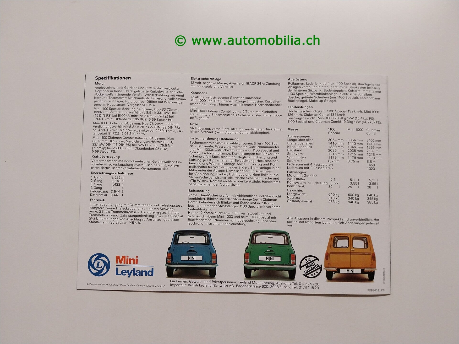 Marke / Modell: Mini – Modellprogramm (1100 Special, 1000, 1100 Clubman Combi)