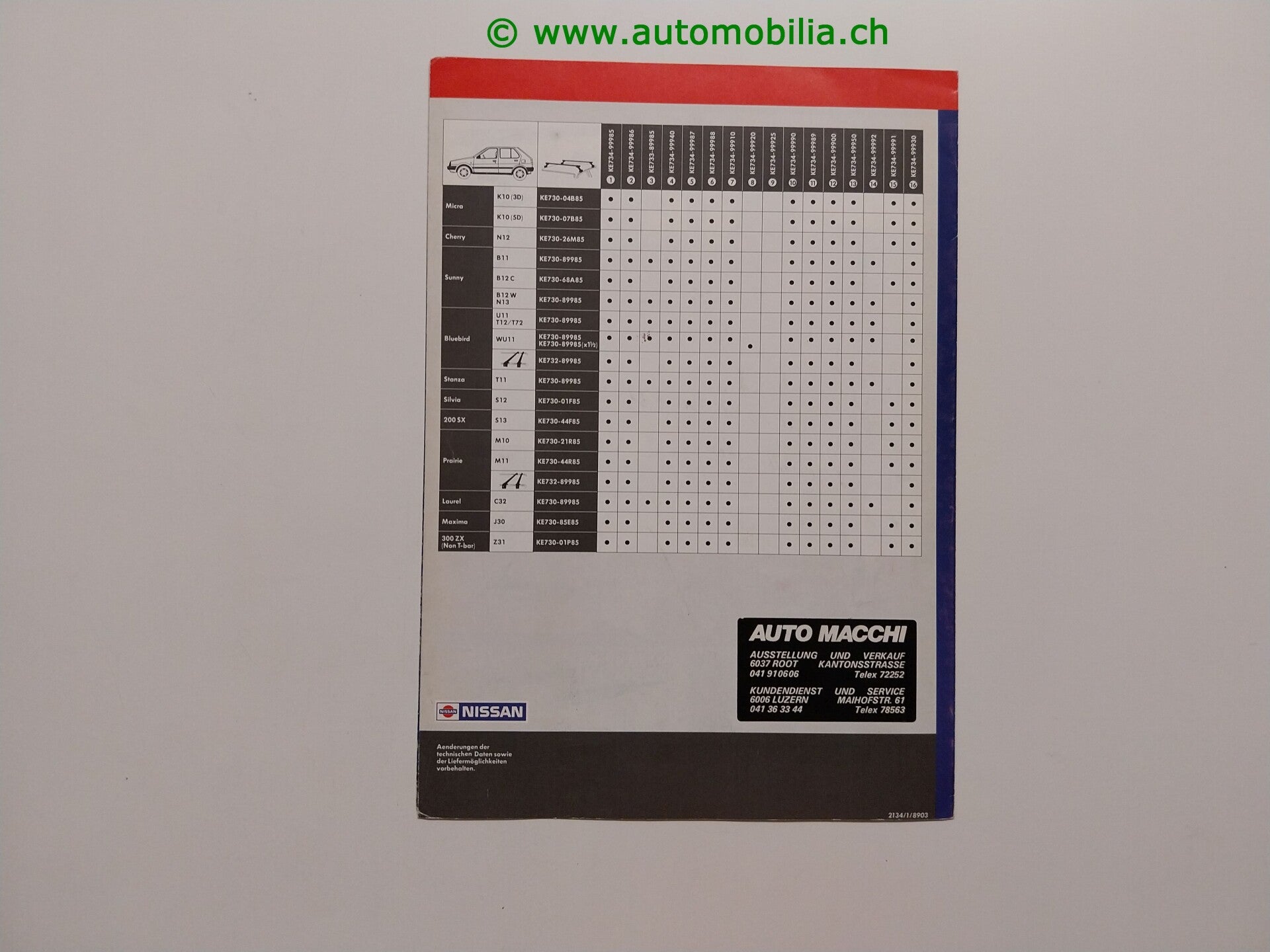 Nissan Dachträger-Systeme 1983/09 Zubehörprospekt deutsch