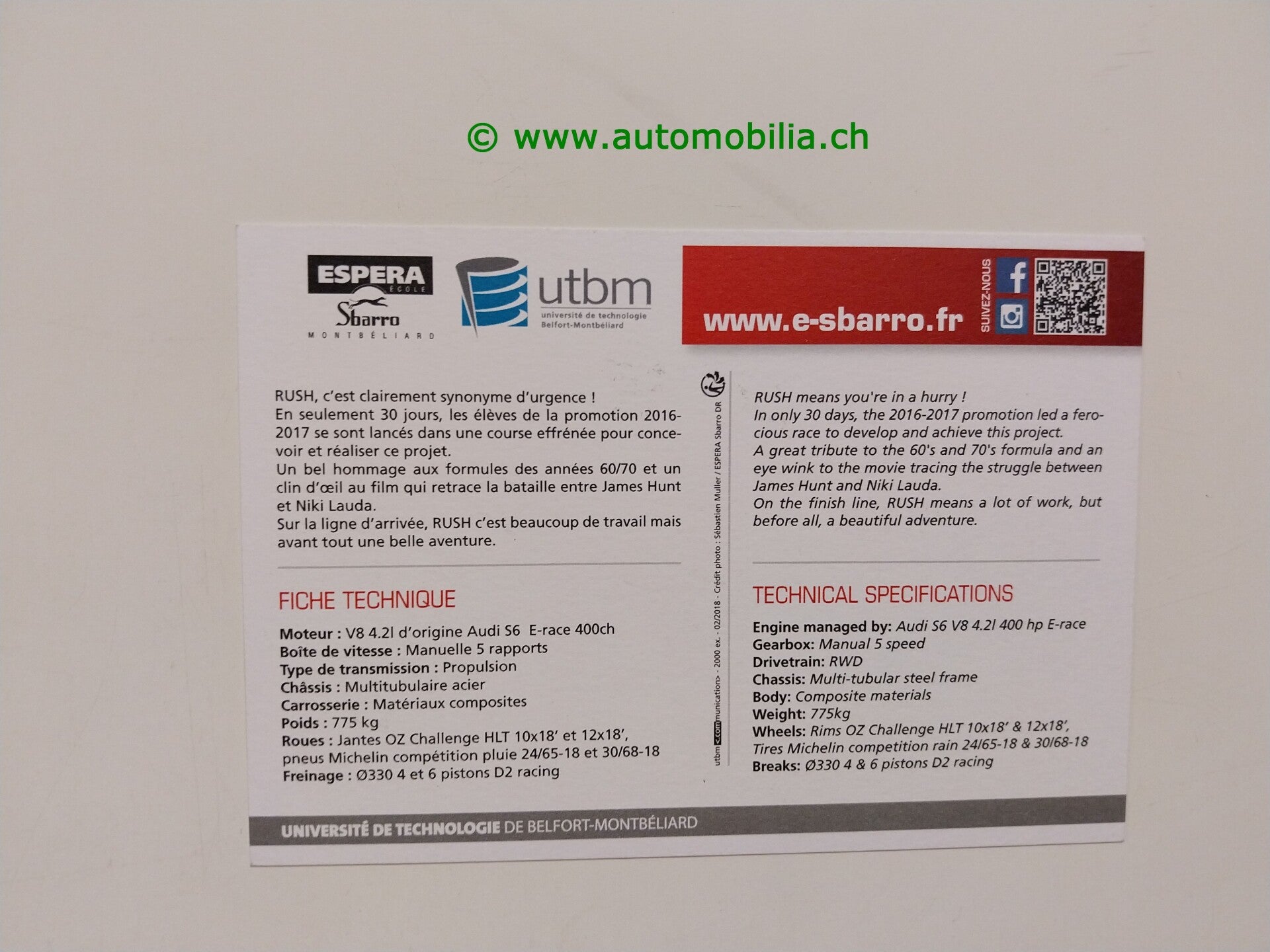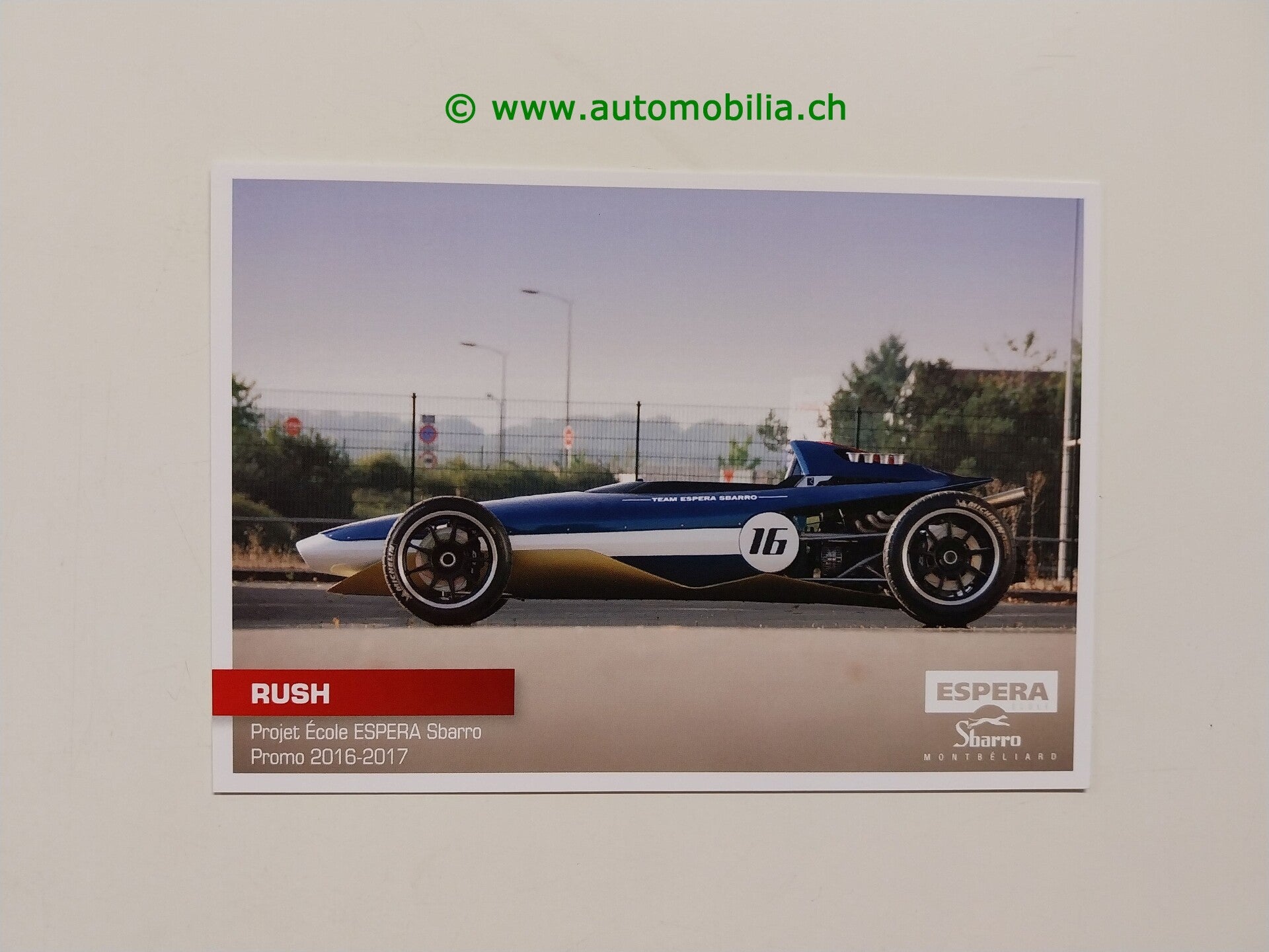 Wir bieten hier eine originale Prospektkarte zum Sbarro Rush Concept Car aus dem Jahr 2016 an. Dieses seltene Dokument stammt direkt aus dem Design Studio von Franco Sbarro, einem der bekanntesten Automobildesigner der Schweiz.