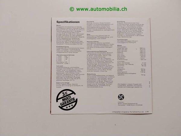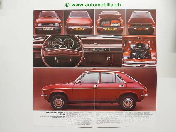 Wir bieten hier ein originales Prospekt des Austin Allegro 1300 Four Door SDL aus dem Jahr 1976 an. Dieses seltene Dokument wurde im Februar 1976 in deutscher Sprache für den Schweizer Markt gedruckt und trägt die Drucknummer LI 55.