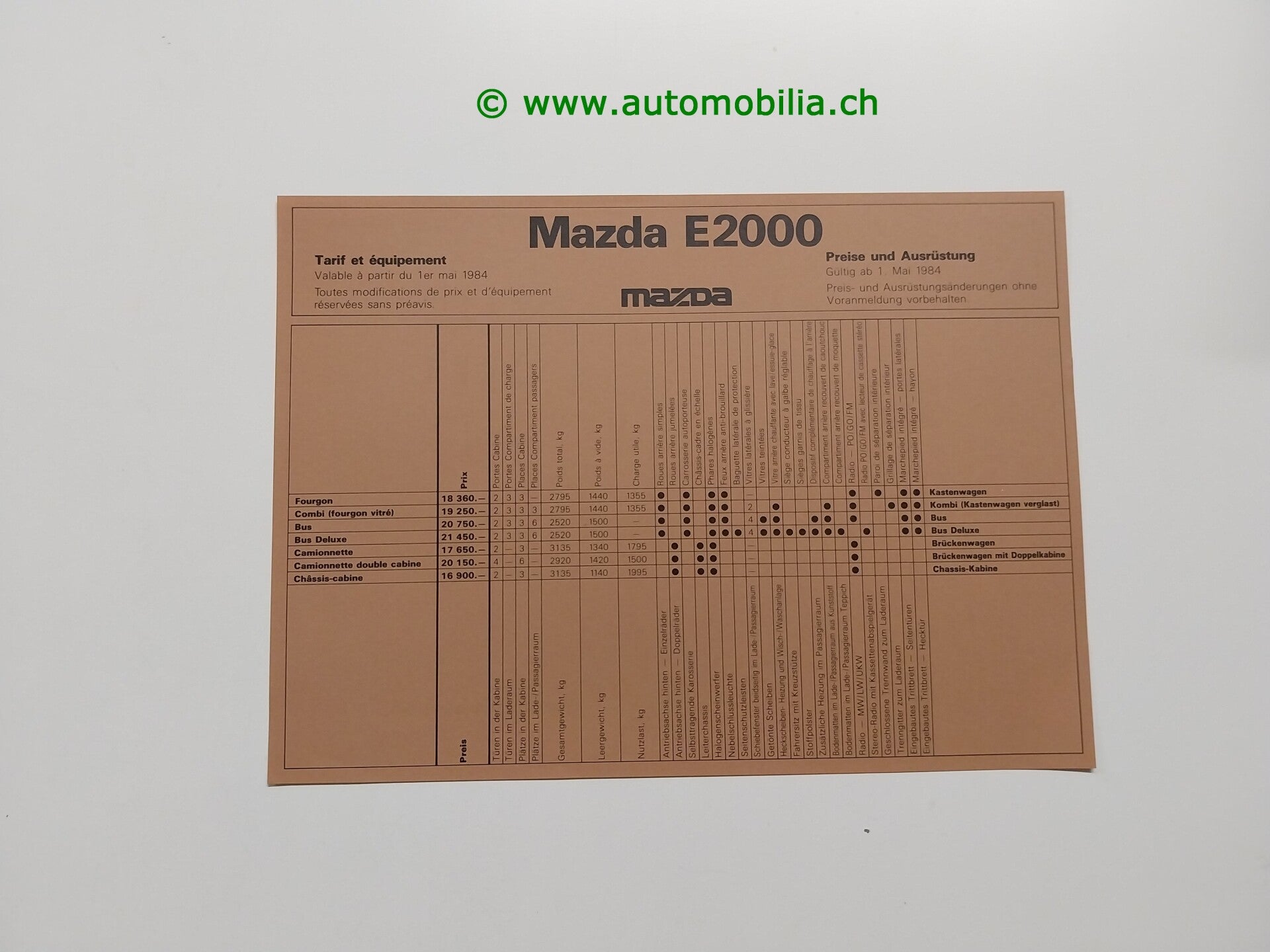 Mazda E2000 1984/05 Preisliste deutsch/französisch