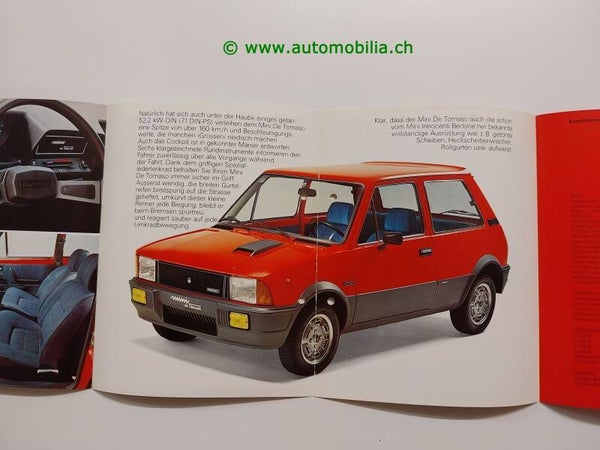 👉 Kaufen Sie das Innocenti Mini de Tomaso Prospekt 1978 (Schweiz, deutsch, 8 Seiten, gelocht) und sichern Sie sich ein Stück italienische Automobilgeschichte.