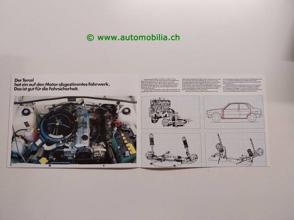 Zum Verkauf steht ein originales Prospekt des Toyota Tercel aus dem Modelljahr 1979. Dieses hochwertige Dokument wurde in Deutschland gedruckt und bietet umfassende Informationen zu Design, Technik und Ausstattung des kompakten Toyota-Modells.