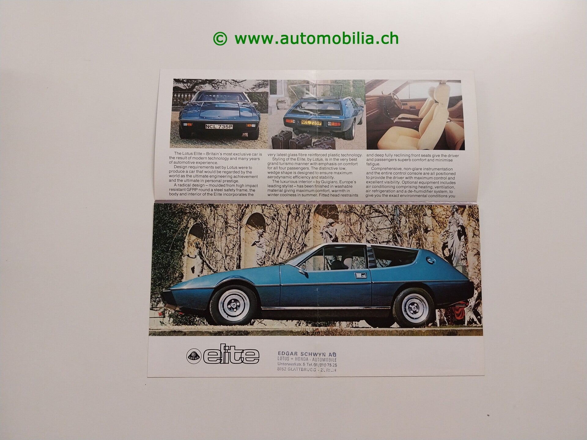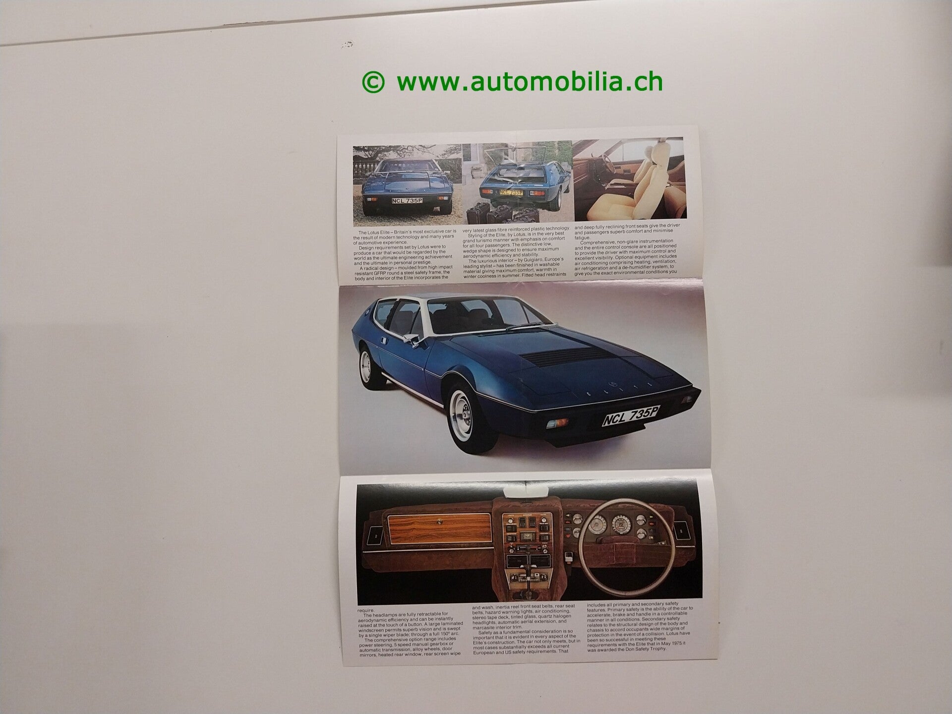Verpassen Sie nicht die Gelegenheit, ein Originalprospekt des Lotus Elite von 1978 zu sichern – ein exklusives Highlight für jede Sammlung klassischer Sportwagen-Werbung.