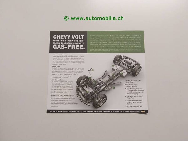 Zum Verkauf steht eine originale Werbebroschüre des Chevrolet Chevy Volt Concept aus dem Jahr 2007, einem bahnbrechenden Elektrofahrzeug der US-Marke Chevrolet. Diese 2-seitige, englischsprachige Broschüre bietet kompakte Informationen zu Design, Technik und Innovationen des Chevy Volt – ein einzigartiges Sammlerstück für Concept-Car-Fans, E-Mobility-Enthusiasten und Automobilhistoriker.