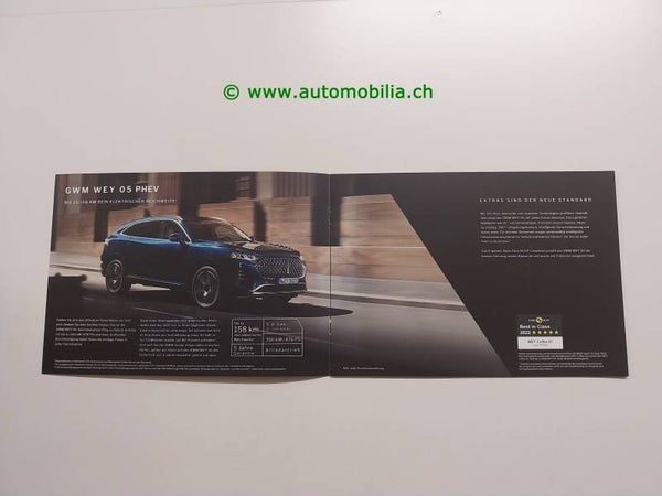Sichern Sie sich die offizielle Werbebroschüre des neuen GWM Wey 05 – einem der aktuell spannendsten SUV-Modelle der chinesischen Premiummarke Wey (GWM). Diese 8-seitige, deutschsprachige Broschüre bietet hochwertige Informationen zu Design, Technik und Ausstattung des Wey 05 und ist ein absolutes Muss für Sammler, Händler und Automobil-Enthusiasten.