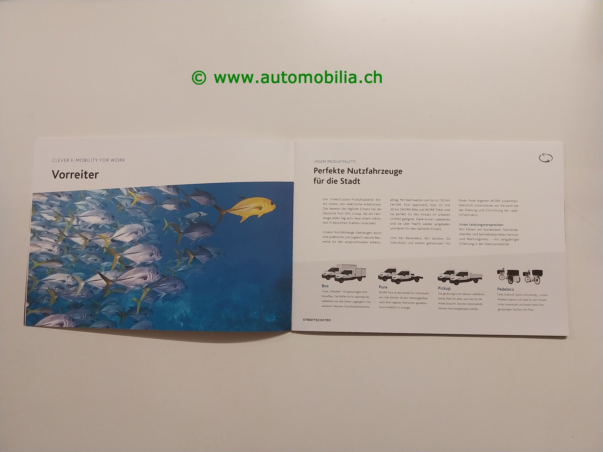 Zum Verkauf steht eine umfangreiche, 20-seitige Original-Broschüre zum StreetScooter Modellprogramm – inklusive Trike, Work und Work L. StreetScooter war einer der großen europäischen Vorreiter im Bereich elektrischer Nutzfahrzeuge – entsprechend gefragt sind originale Verkaufsunterlagen heute.