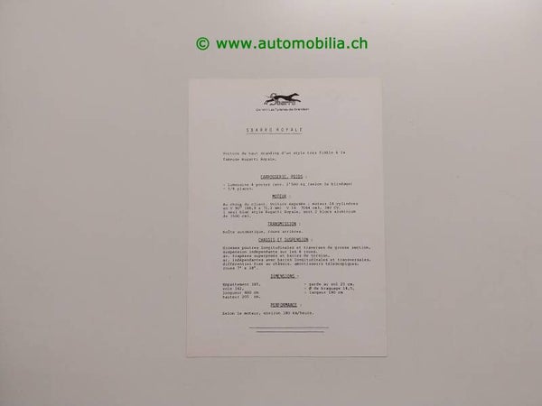 Ein seltenes Sammlerstück für Liebhaber exklusiver Fahrzeugdesigns – der Sbarro Royale Prospekt ist ein Highlight für jede Sammlung von Kleinserien und Unikaten.