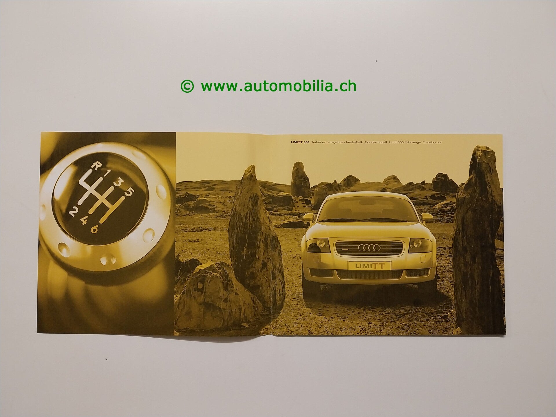 Originaler Audi TT LimiTT 300 Prospekt von Oktober 2000, 8 Seiten, Deutsch, Schweiz-Ausgabe, Format ca. 21 × 24 cm, guter Zustand. Sehr seltene Verkaufsbroschüre des auf nur 300 Exemplare limitierten Sondermodells.