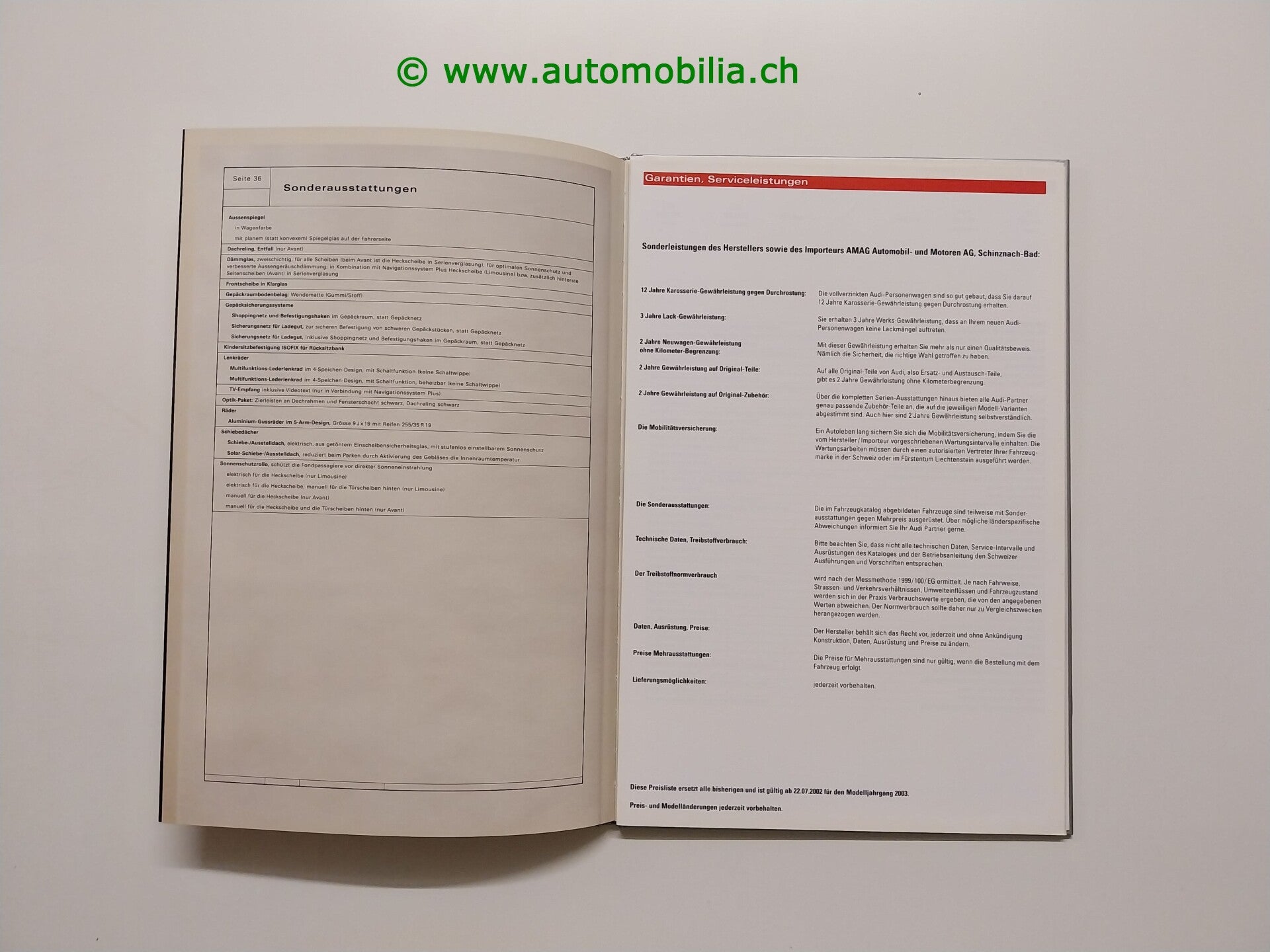 Besonderheit: Hardcover-Book, inkl. Preisliste